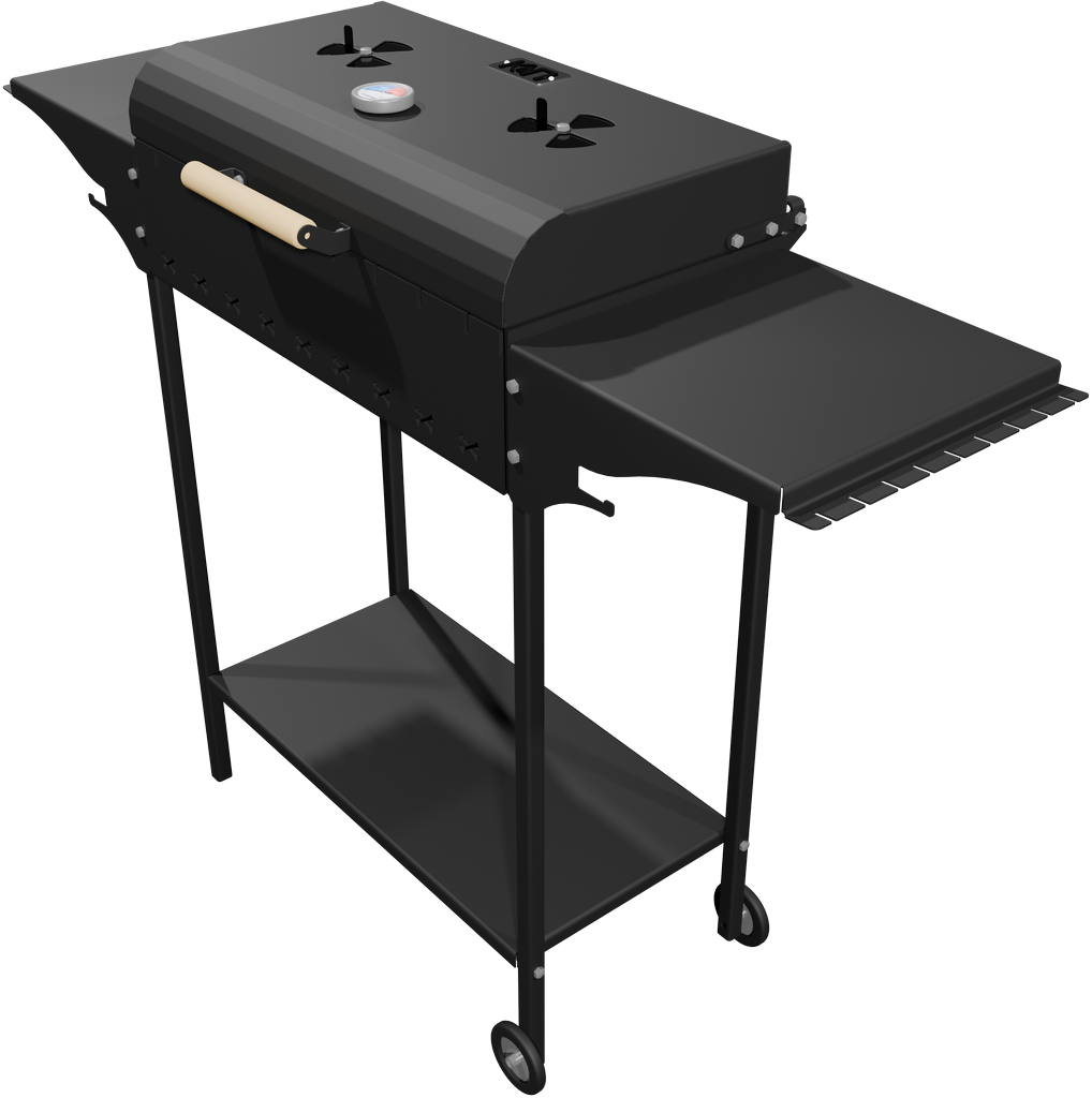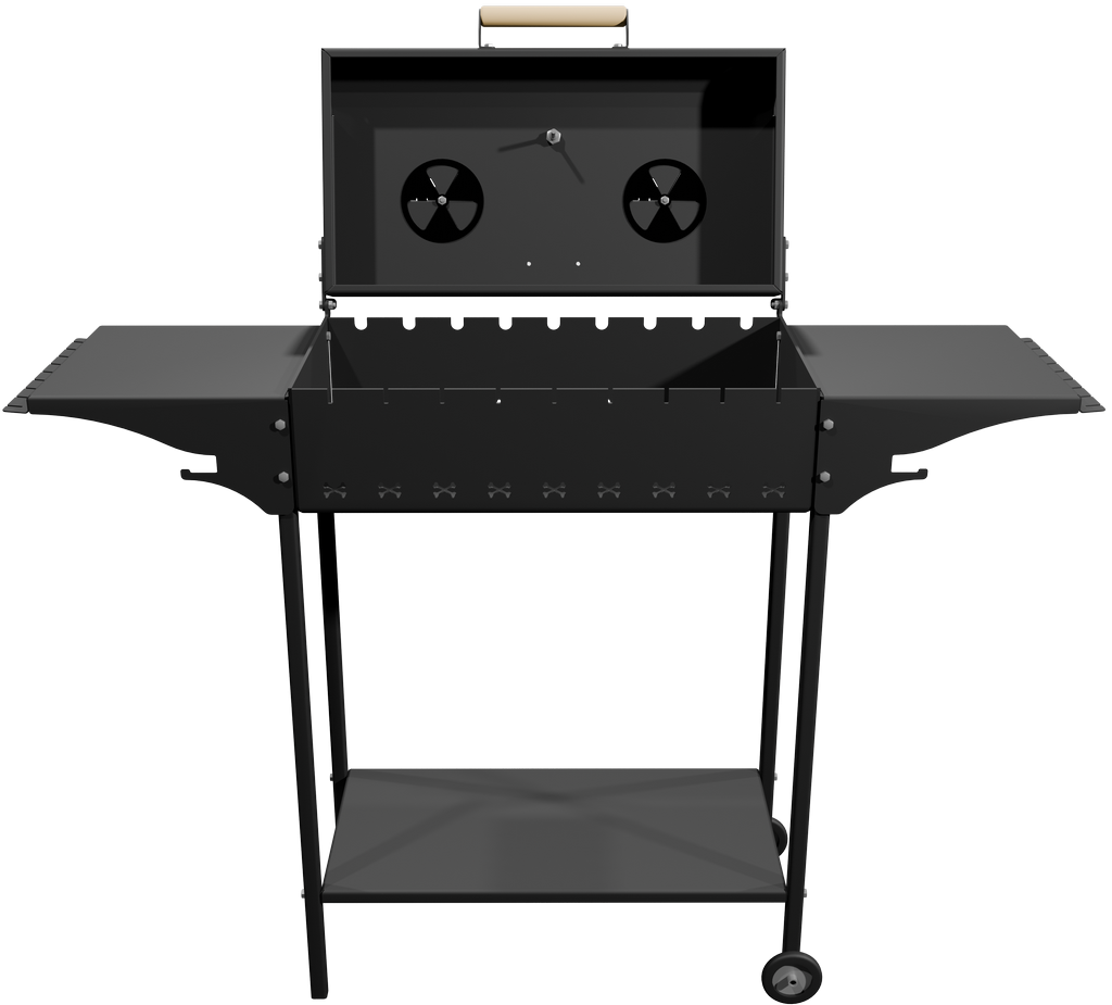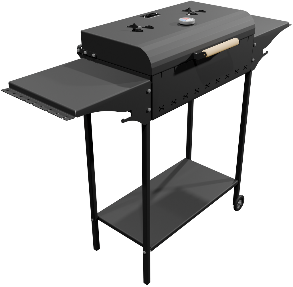В крышке жаровни установлен термометр и две заслонки. С их помощью можно гибко подходить к приготовлению блюд, настраивая оптимальную для их приготовления температуру.