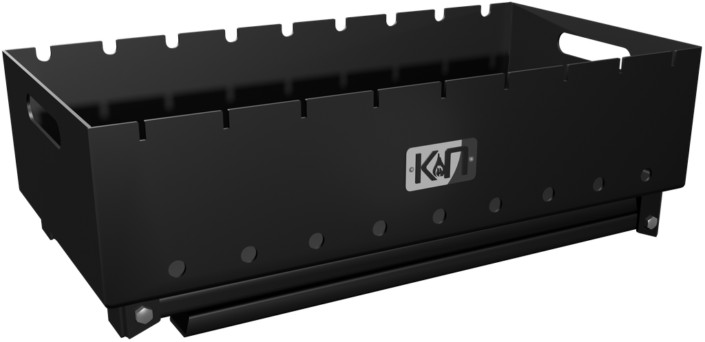 Для удобства эксплуатации мангала РЫСЬ на верхних кромках его боковых стенок предусмотрены пазы для фиксации шампуров. На одной стороне они имеют закругленную форму, что позволяет свободно вращать шампур. На другой стороне пазы имеют прямоугольную форму, надежно фиксируя шампур, не позволяя ему проворачиваться под тяжестью кусочков шашлыка. В нижней части чаши сделаны отверстия для подачи воздуха.